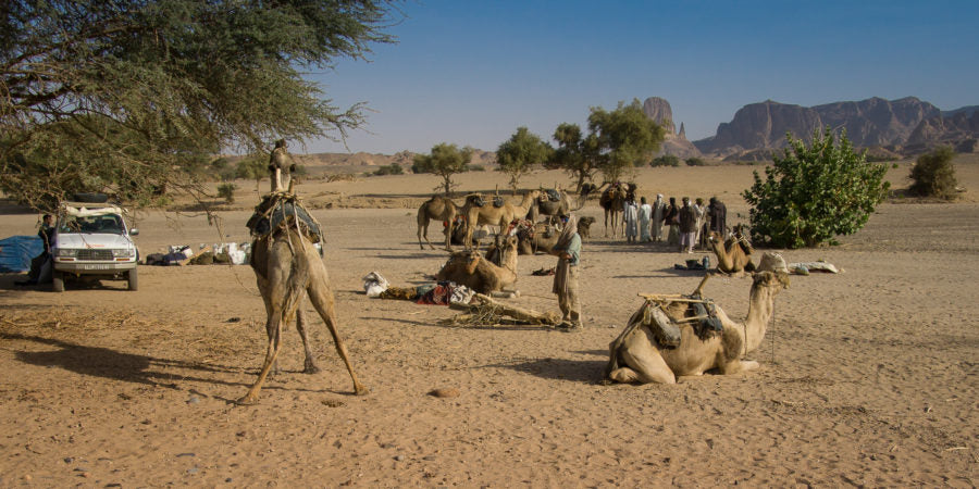 In order to reach the summit we would have to first deal with both the bureaucratic and logistical problems involved in crossing a desert mountain range. Luckily our in-country team SVS had liaised with our local guide and arranged for us to meet the Toubou at their village at the base of the volcano. From there we would be able to negotiate for, and rent, twelve camels and their handlers who would be responsible for getting our remaining expedition gear up to the last camp in the caldera of the volcano and back down again. A journey that would take nine days.