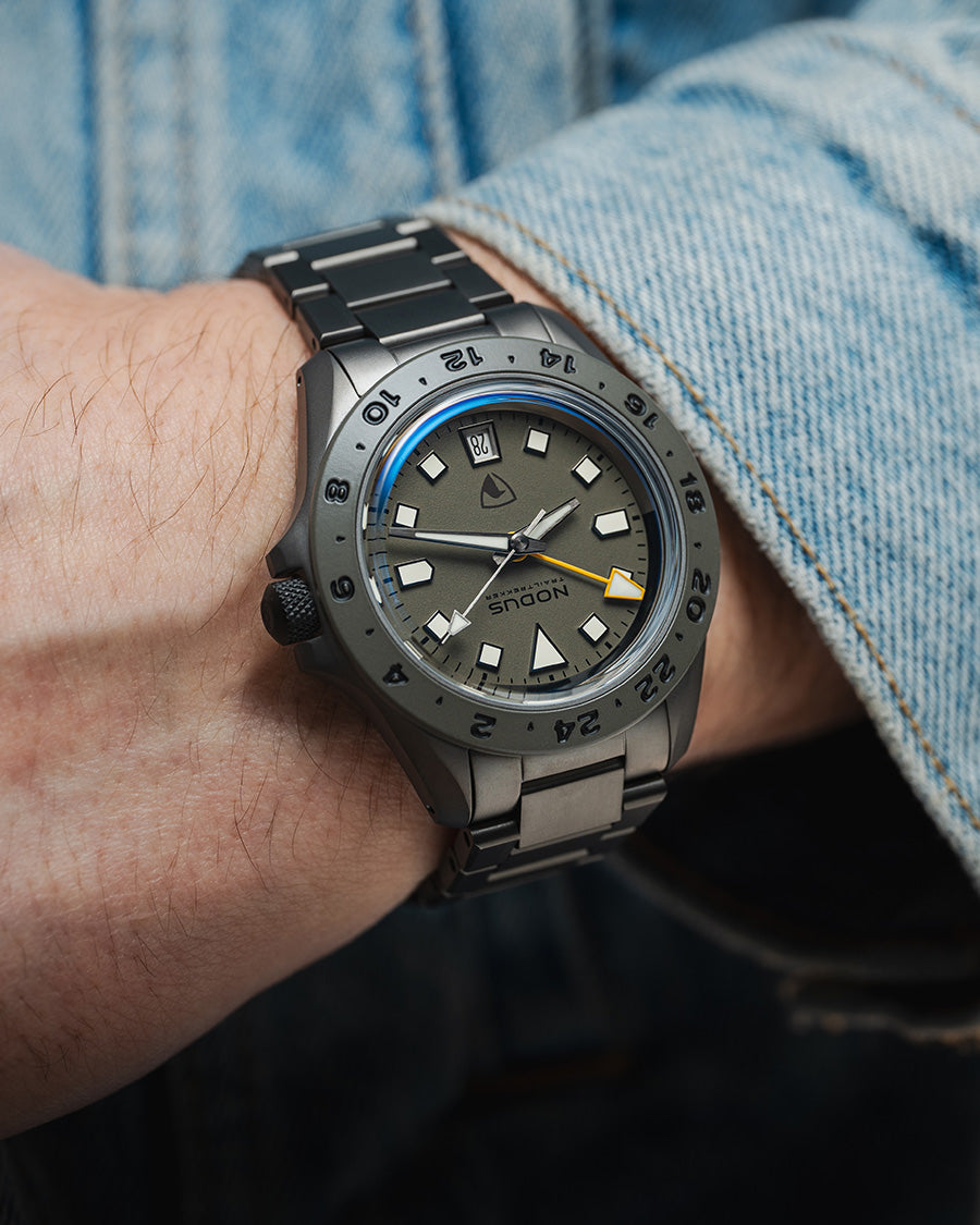 While Raven and Nodus offer a wide selection of models, two have captured the hearts of enthusiasts and developed dedicated followings within our communities: the Raven Trekker and Nodus Contrail. By merging the flagship Raven diver with the quintessential Nodus travel watch, we have created a subdued, robust, and versatile tool for adventures on the trail and beyond.